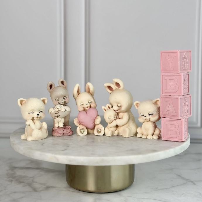 Silikonski kalup za čokoladu. Figure mačke, medvjeda, zeca, lava i jelena koje možete staviti na tortu. 20€ po kalupu. Dvije male mačke 10€ svaka. Svaka je korištena samo par puta, tako da je u stanju kao nova, neke nikada nisu korištene.