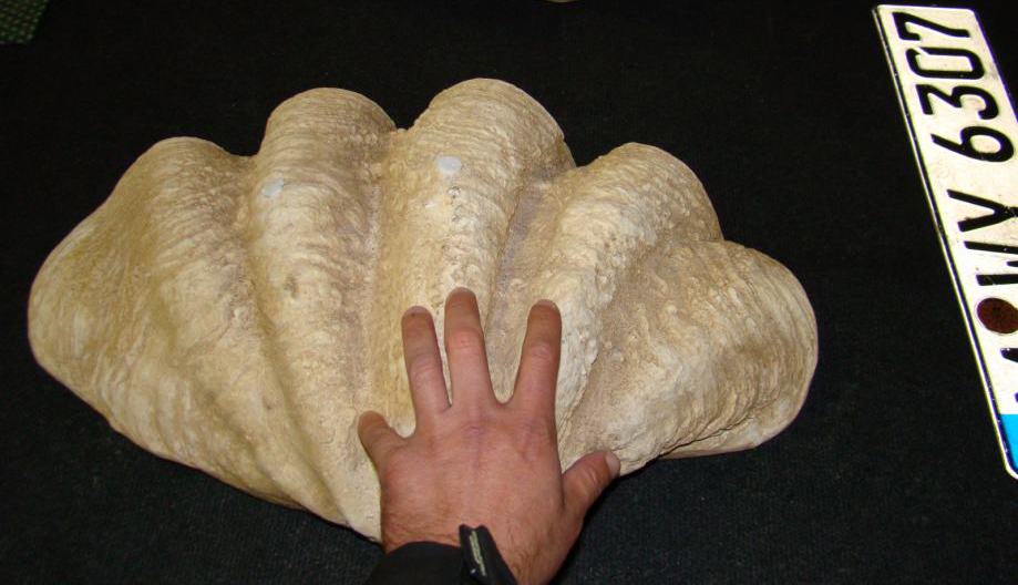 školjka, očišćena, može poslužiti za ukras ili kao posuda za serviranje hrane, dimenzije 60x40cm
