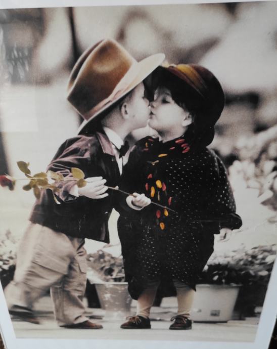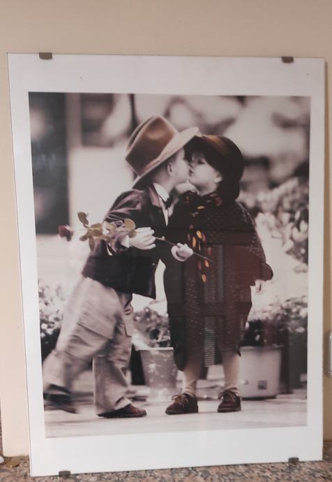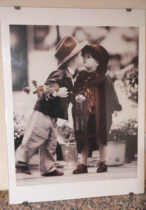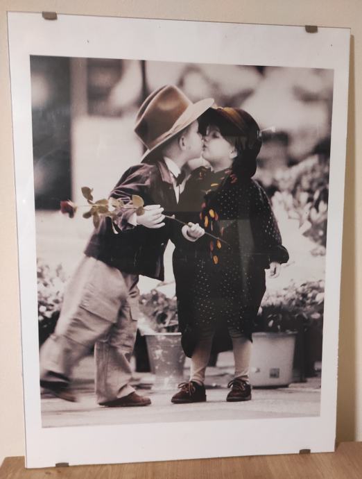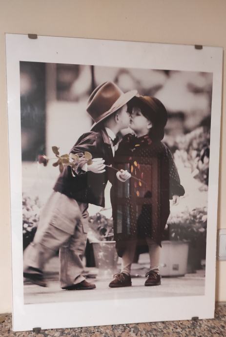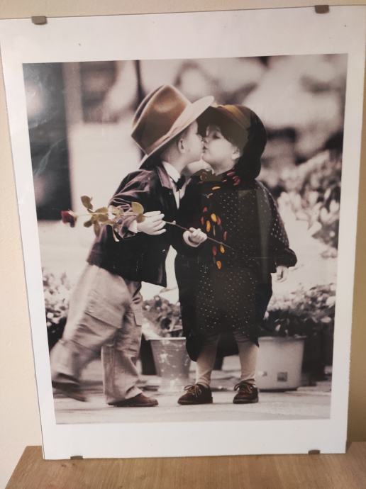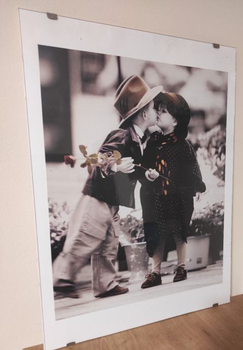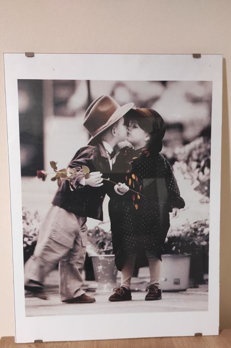 Slika dječak i djevojčica poljubac poster između dva stakla dimenzija 43,5 x 58,5