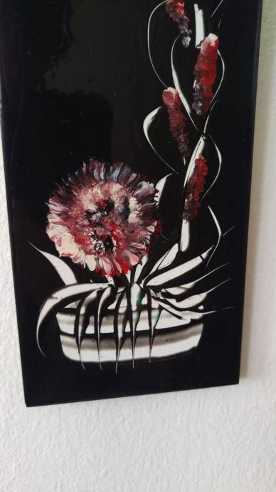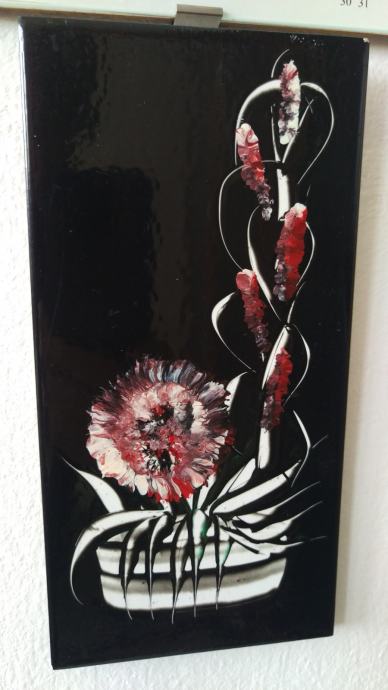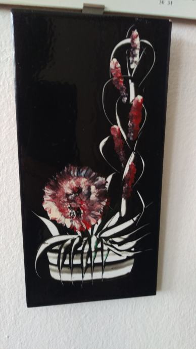 Prodajem sliku na keramičkoj pločici, ručni rad, cvjetni uzorak, 10 x 20 cm. Pločica je očuvana, neoštećena.