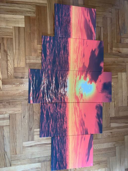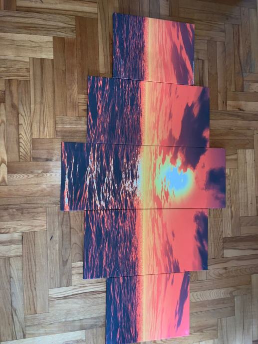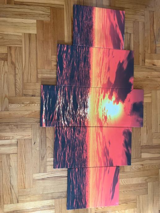 Petodijelna slika zalazak sunca.