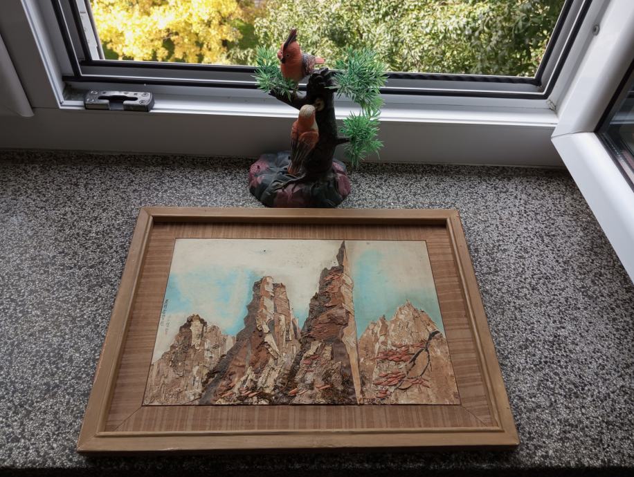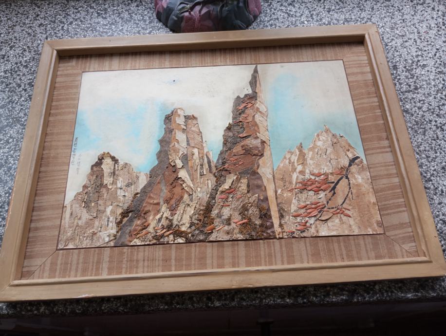 Slika planinski vrhovi, rućni rad, starost cca 60 godina, vidi slike!