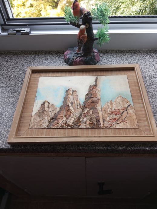 Slika planinski vrhovi, rućni rad, starost cca 60 godina, vanjska mjera: 40cmX29cm, vidi slike! mt(1-oben rega-stro)