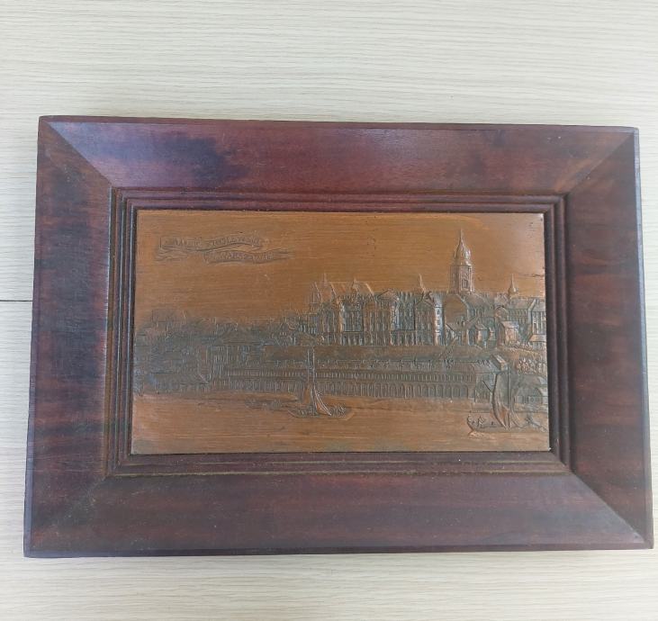 Slika u drvenom okviru. Reljef na bakrenoj podlozi. Royal Castle Warsaw iz polovice prošlog stoljeća.