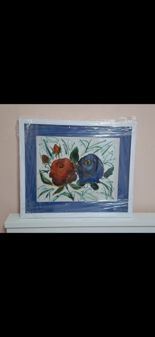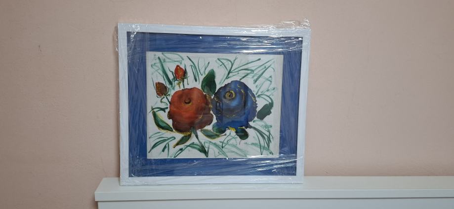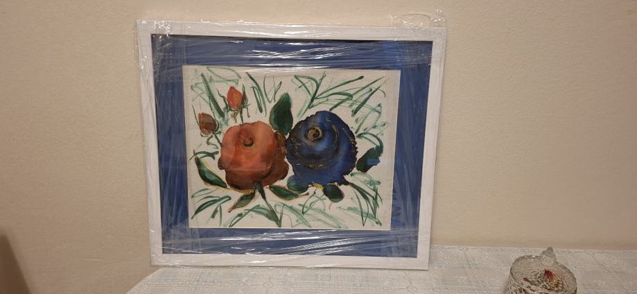 Prodajem novo uramljenu sliku "ruže", slikano na svili. Dimenzije okvira 47,50x40 cm. Bjelovar ili Zagreb. Cijena je 40 eura fiksno.