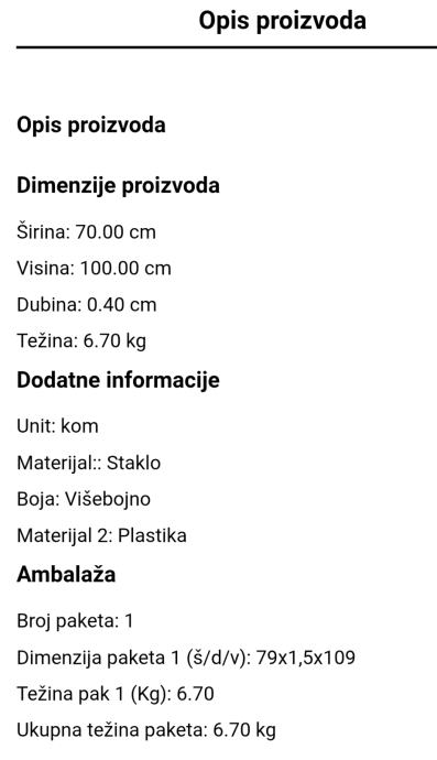 Dimenzije 70×100cm, ostale specifikacije vidljive na jednoj od slika.