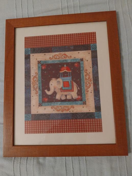 Prodajem uramljenu slike dimenzije 34 x 28 cm, motiv slonića. Cijena 6 EUR