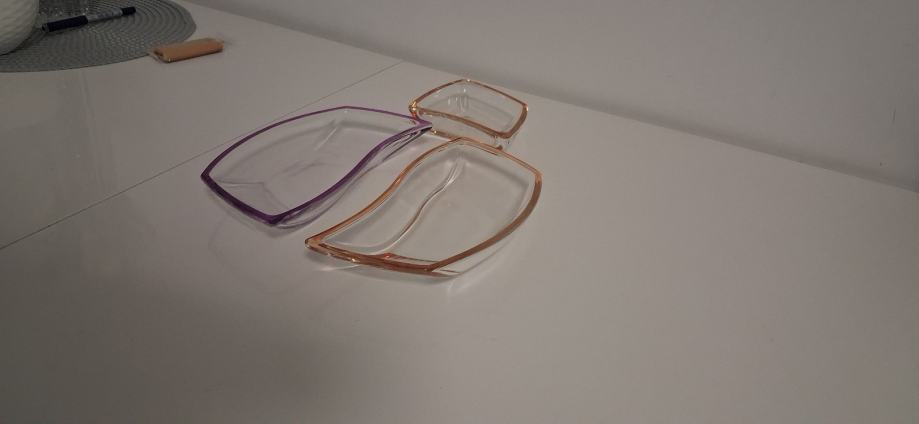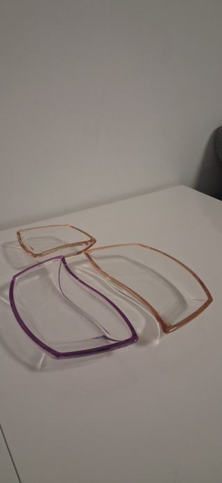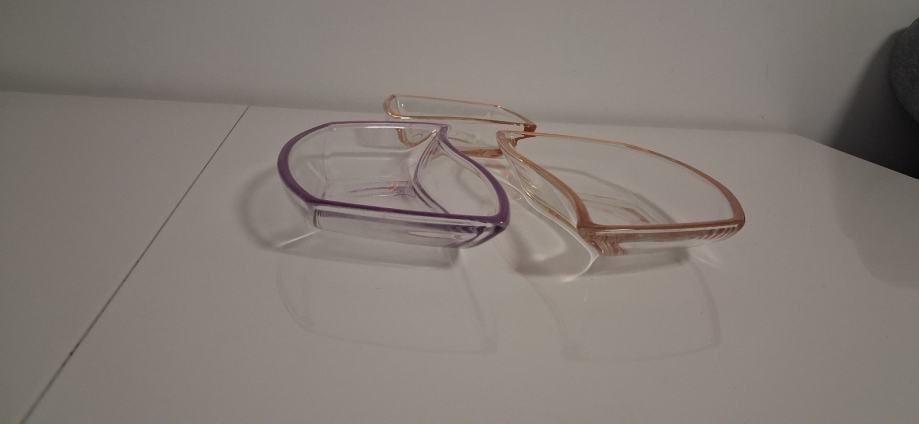 Prodajem 3 staklene zdjele za posluživanje ili razno.Neznam dali se radi o Luigi Bormioli predmetima za posluživanje (prozirno ametist staklo, Italija)