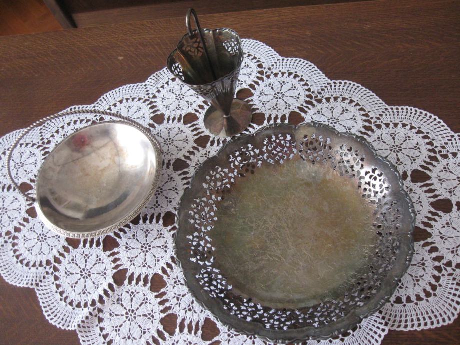 Dvije zdjele ( 7 i 3 eura ), držač salveta ( 5 eura ) i tanjur za zid s lovačkim motivom ( 8 eura )