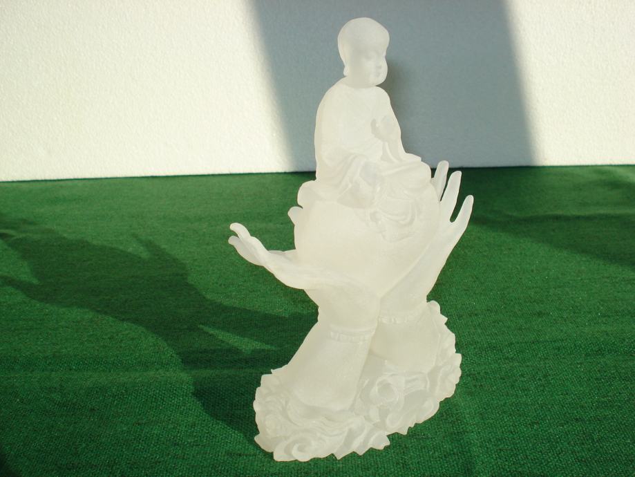 Novu staklenu figuru Buda u mutno bijelom staklu, prodajem.