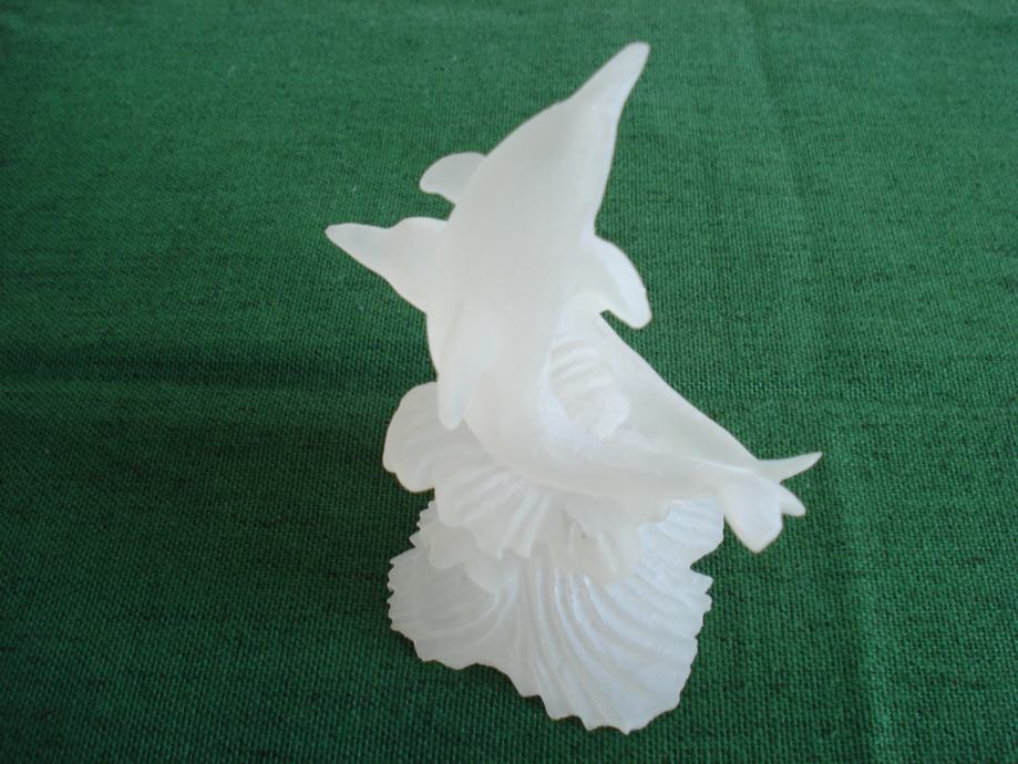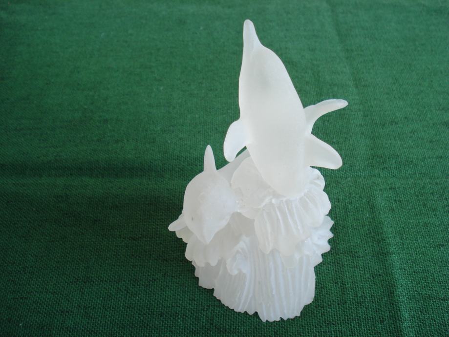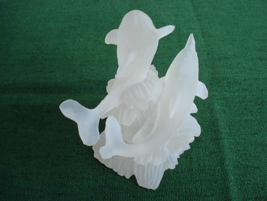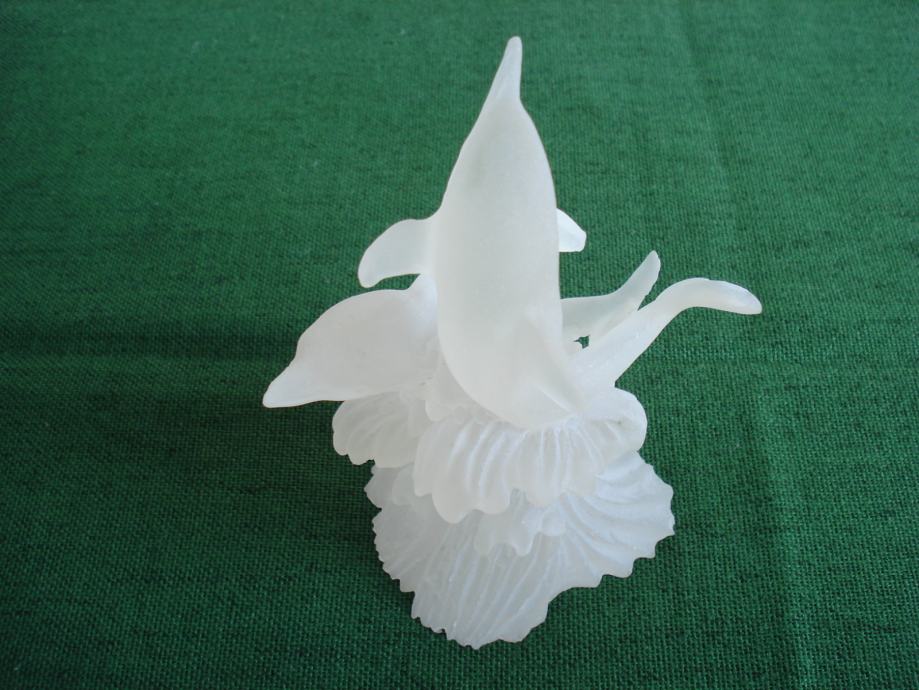 Novu staklenu figuru dva delfina, napravljenu u mutno bijelom staklu, prodajem.