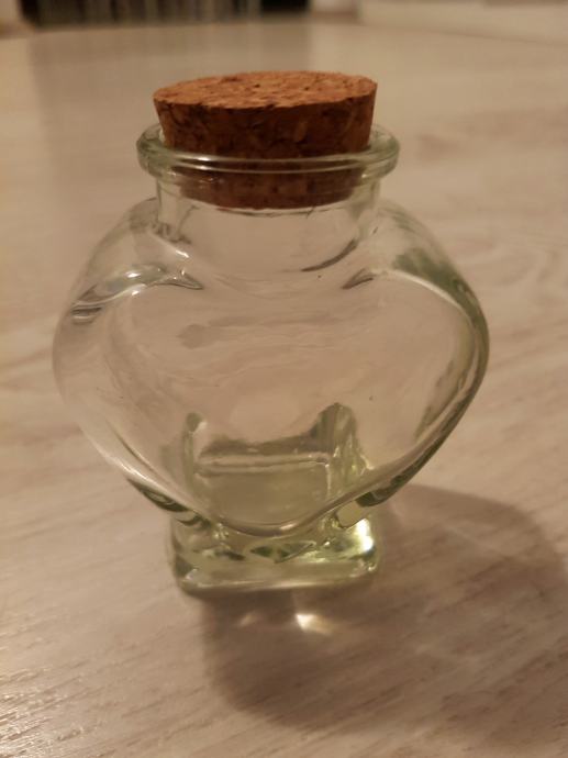 Prodajem staklene bočice u obliku srca idealne za dekoraciju ili kao zahvalnice.