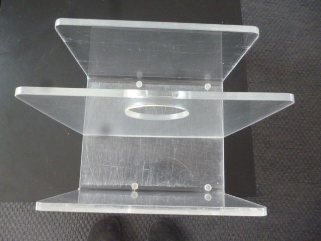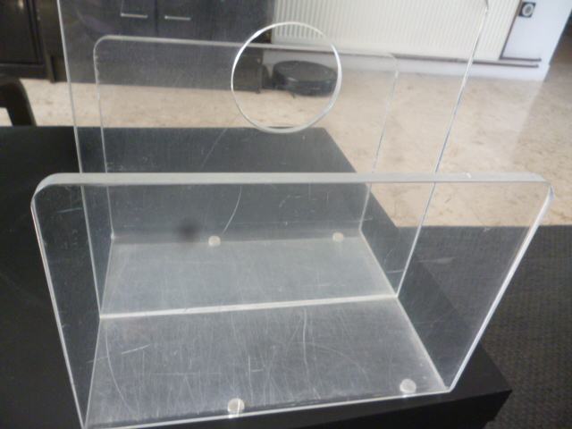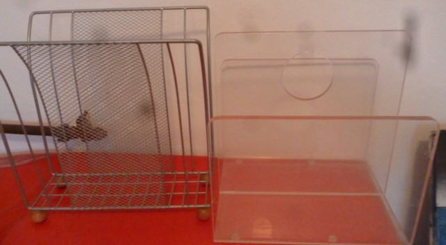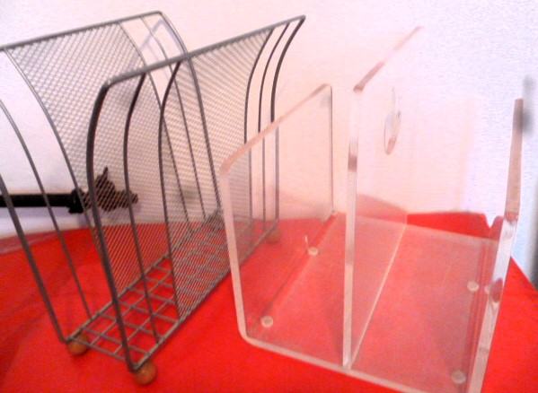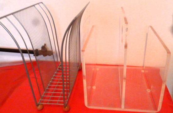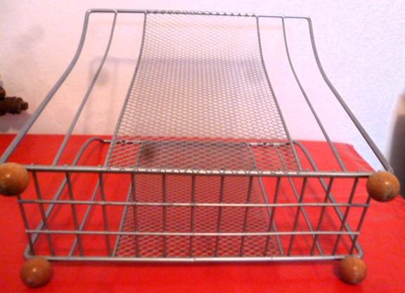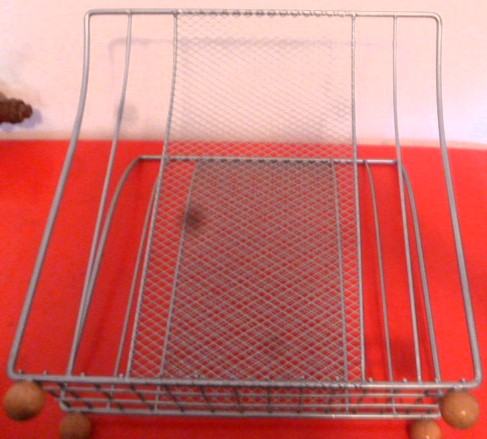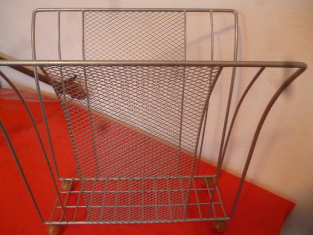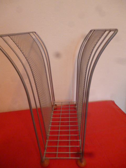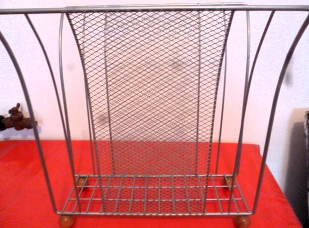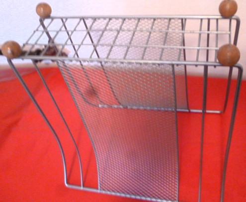 1. Metalni stalak za novine, srebreno siva boja sa drvenim nogicama