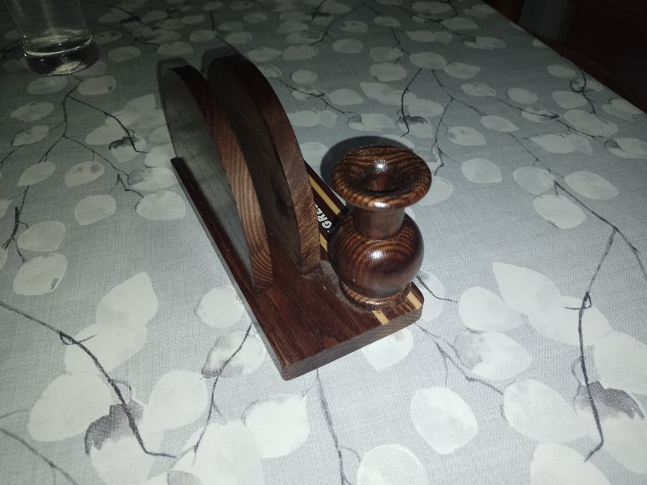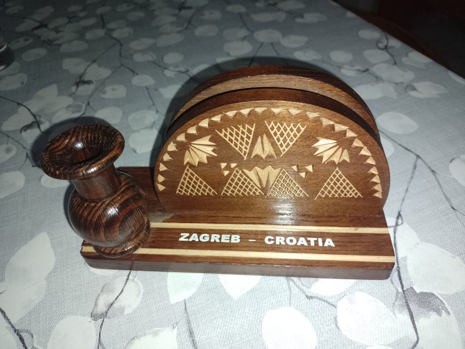 ....i posudica za čačkalice...Drvo. Dimenzije 18 x 8 i visina 9 cm. K'o novo.