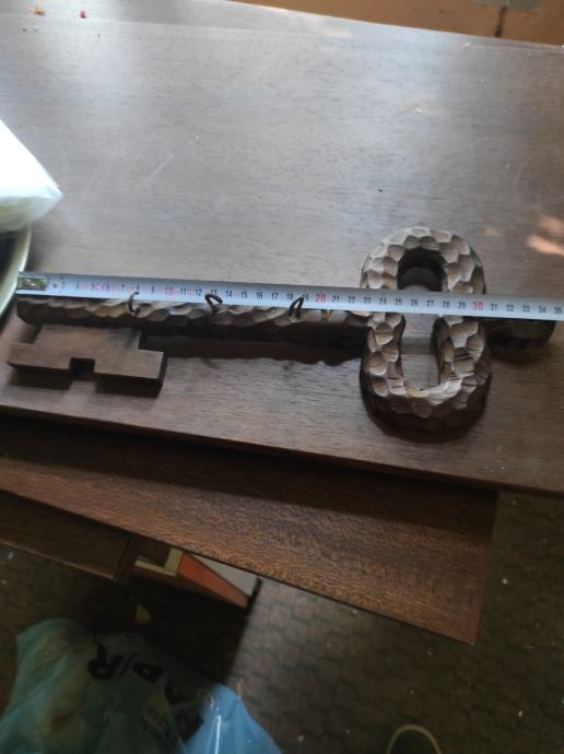 Drveni kljuc 35 centimetara,koji ima tri kukice za objesiti kljuceve ili druge sitnice.Kljic moze biti i obicni ukras u kuci, vikendici, caffe baru ili gdje vec kome pase.Za sve informacije nazovite ili pošaljite upit na Viber ili Njuskalo, a Šaljem Poštom ili Tiskom ili u dogovoru sa kupcem.Vidi slike!!
