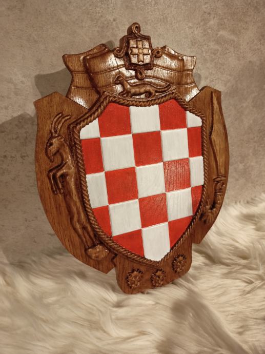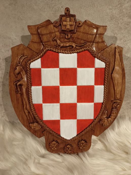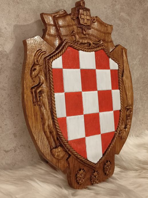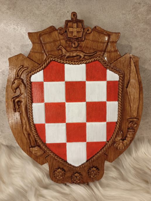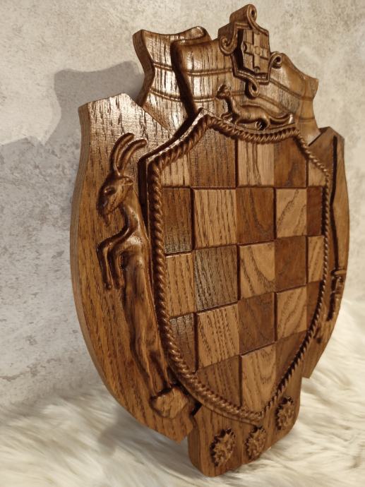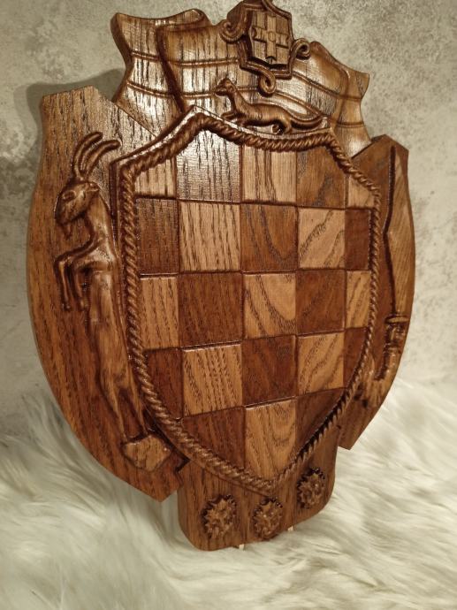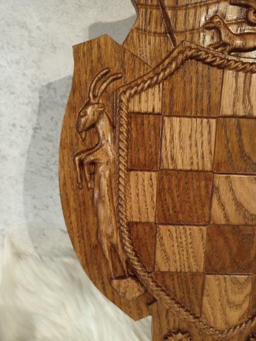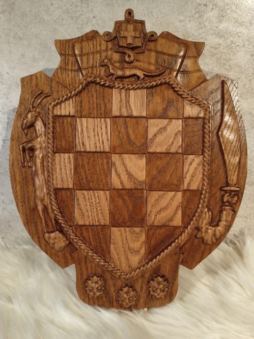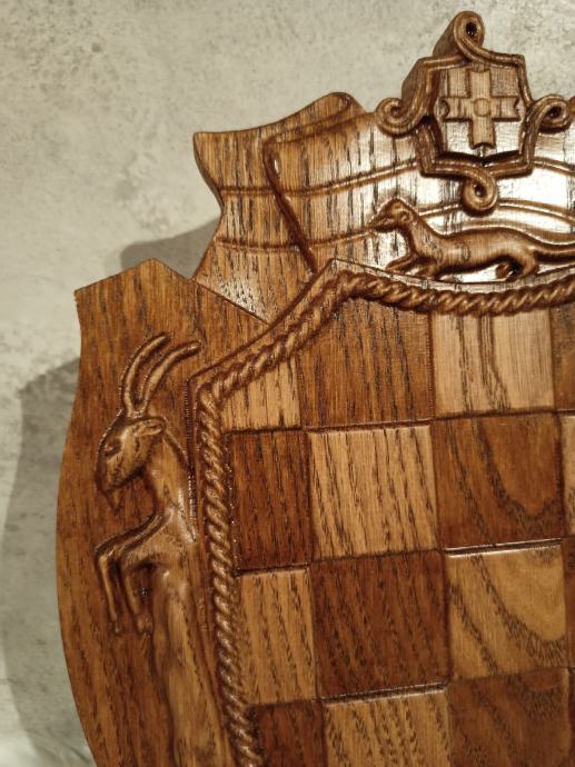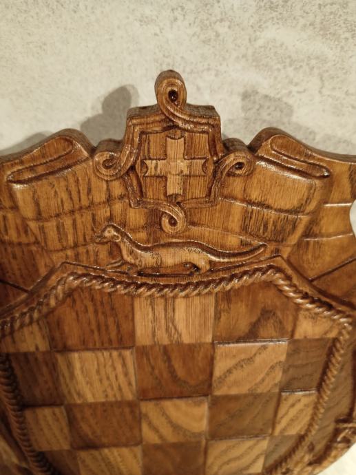 Prodajem rezbariju (duborez) starog hrvatskog grba izrađenu od drveta (hrast).