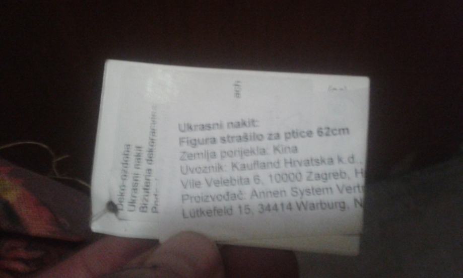 Strašilo za ptice, samostojeća lutka visine 62 cm.