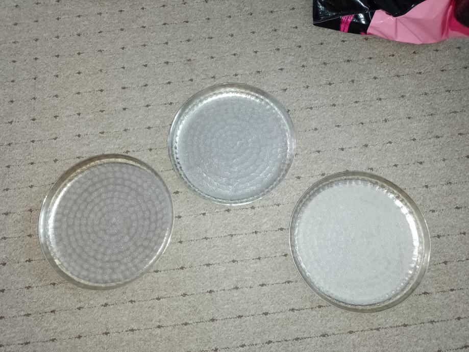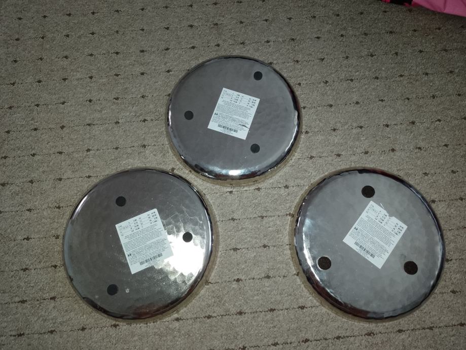 Dekorativna. Ima samo dva komada. (Jedna otišla). Metalna. Kupljeno u kik-u. Promjer 25 cm.Po komadu.