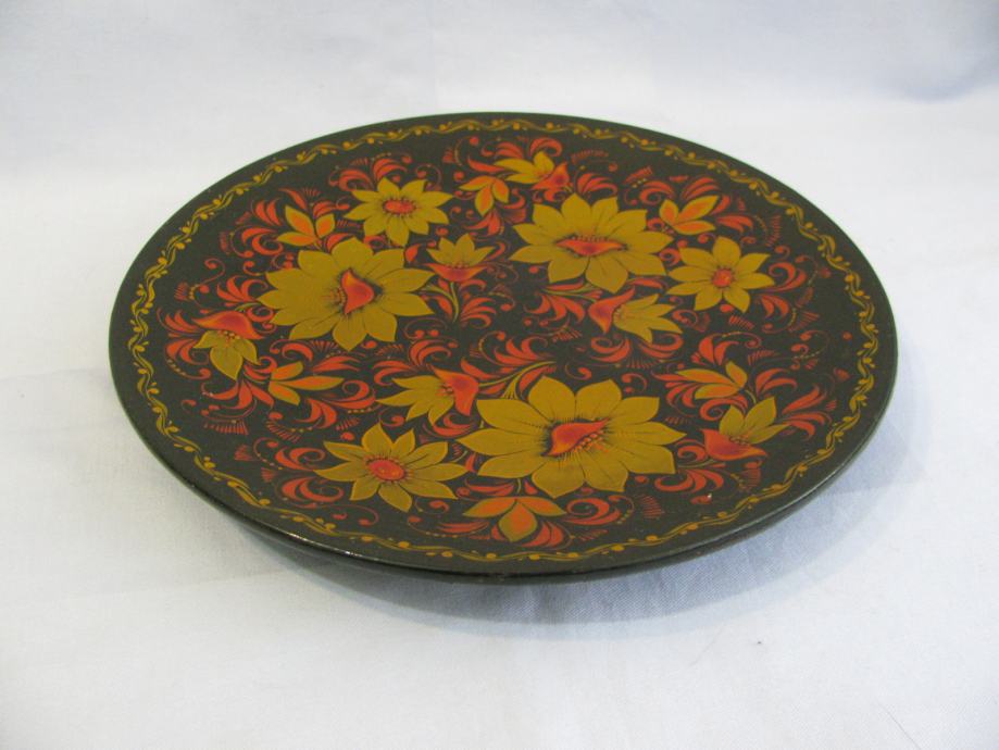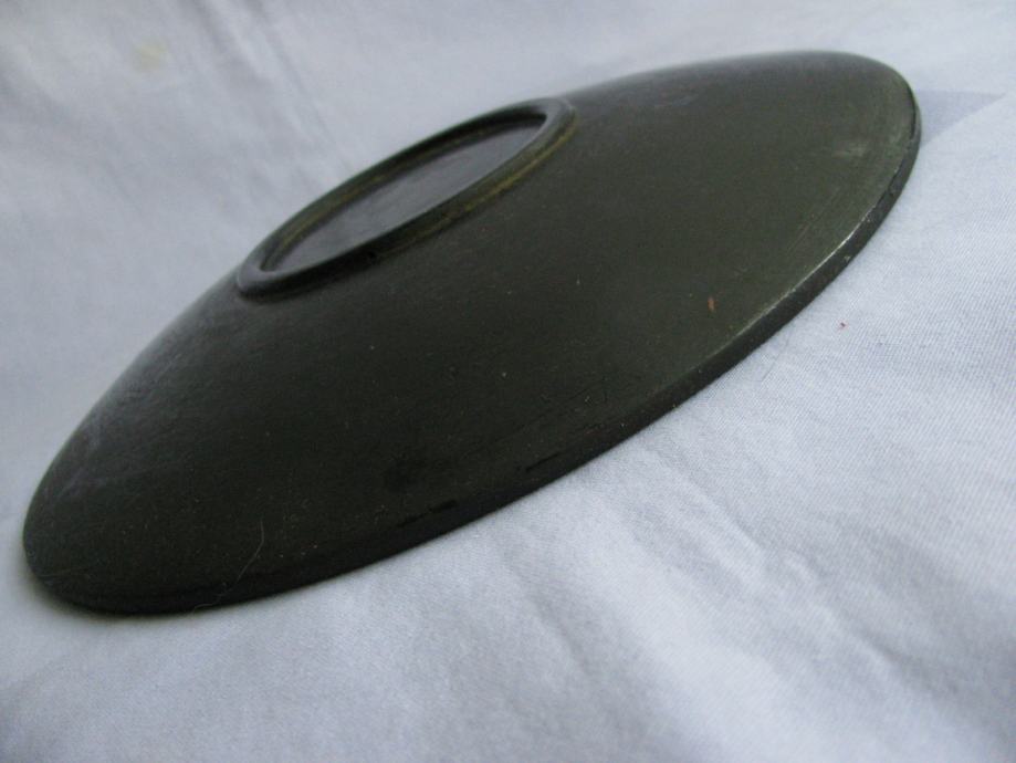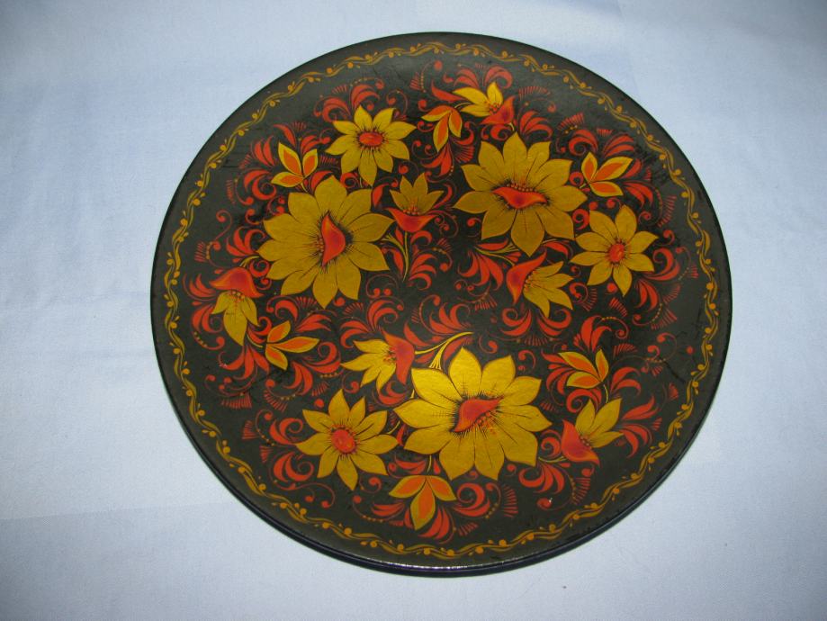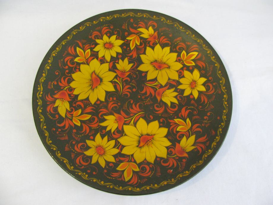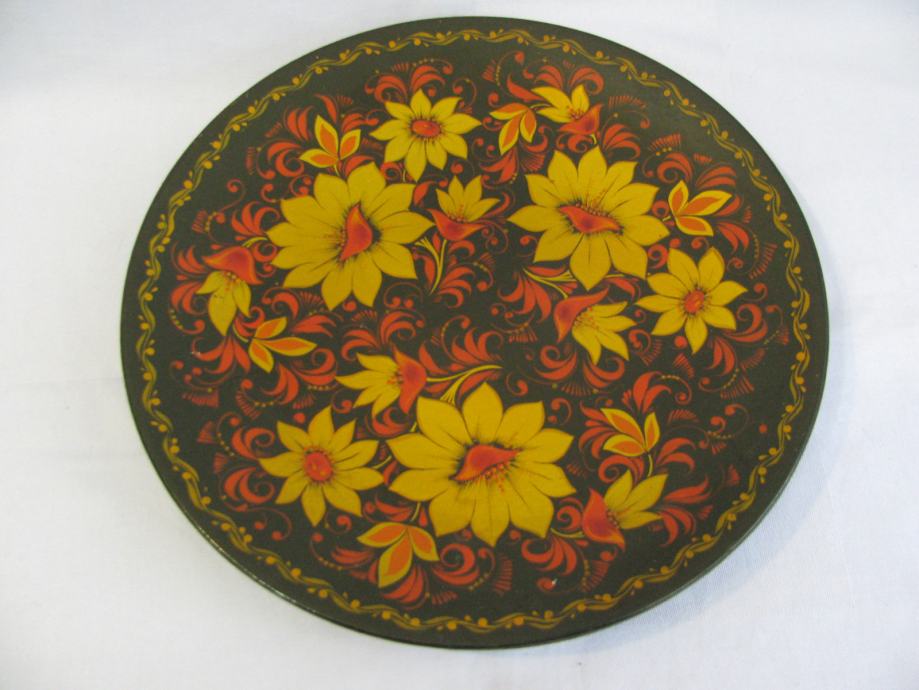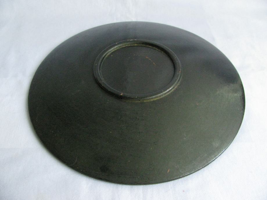 Crno obojan tanjur sa zlatne boje cvijetovi.