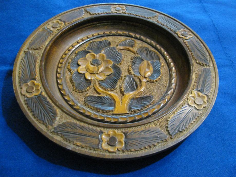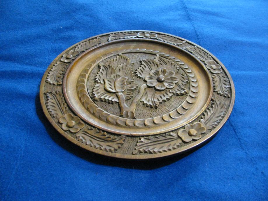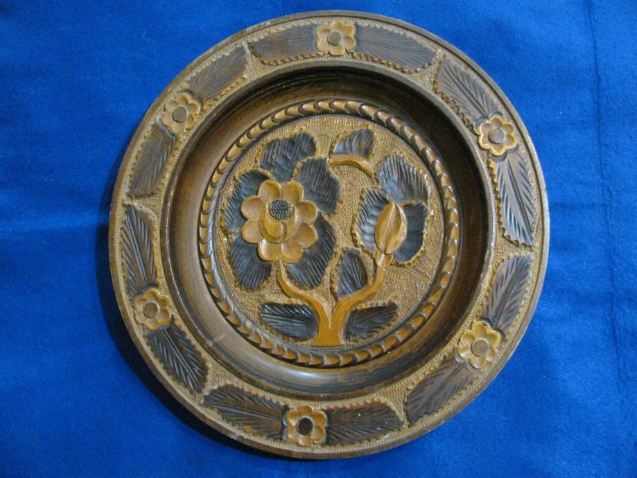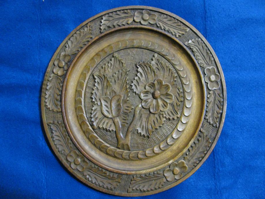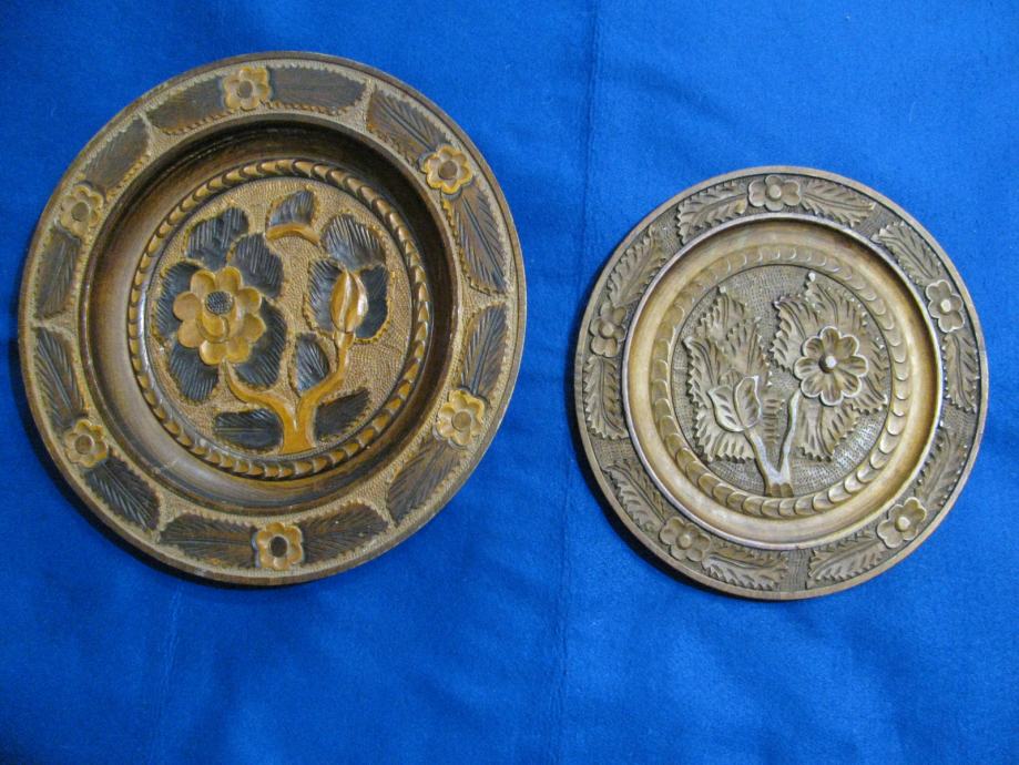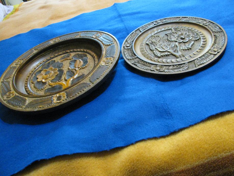Drvena dva tanjura, ručno rezbaren. Duboka reljefna rezbarija.