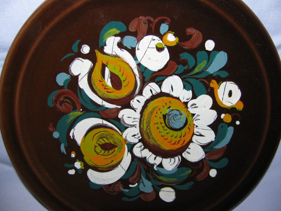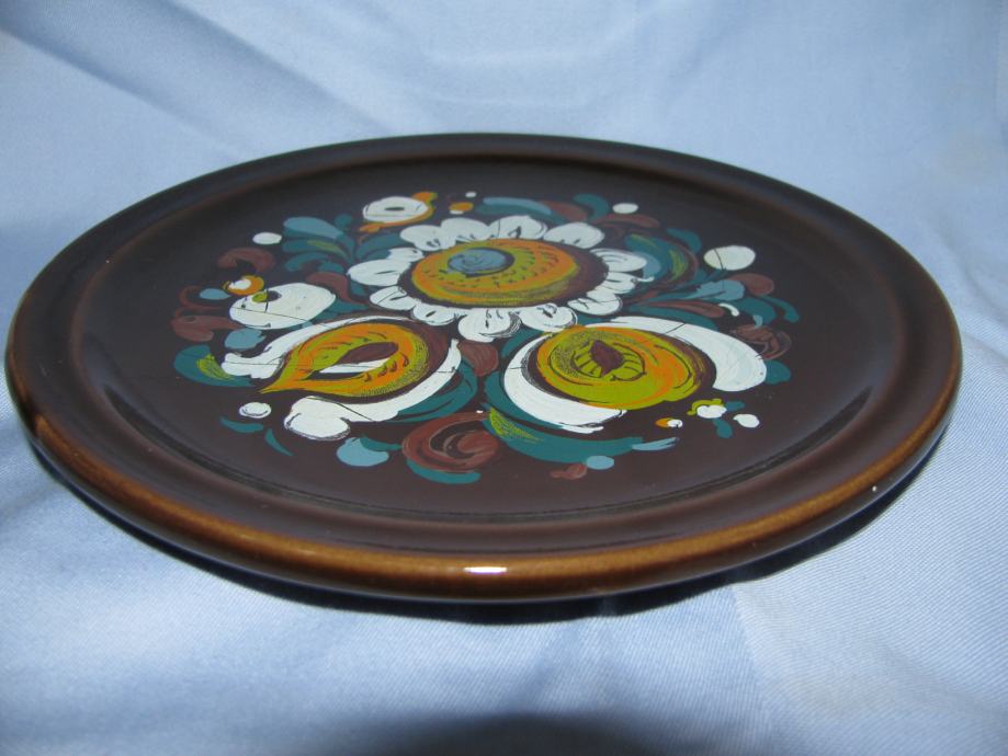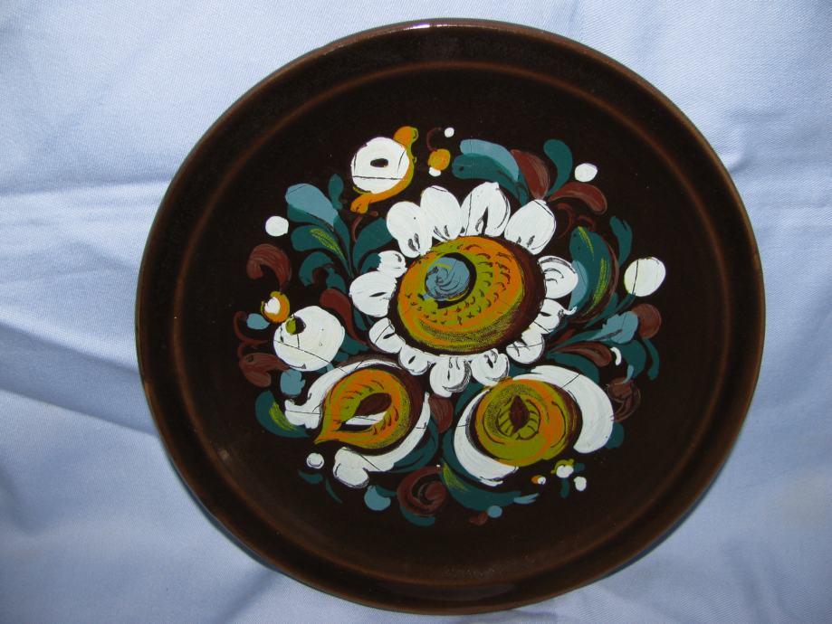 Ukrasni tanjurić sa cvijetovima, tamno smeđe boje, glaziran.