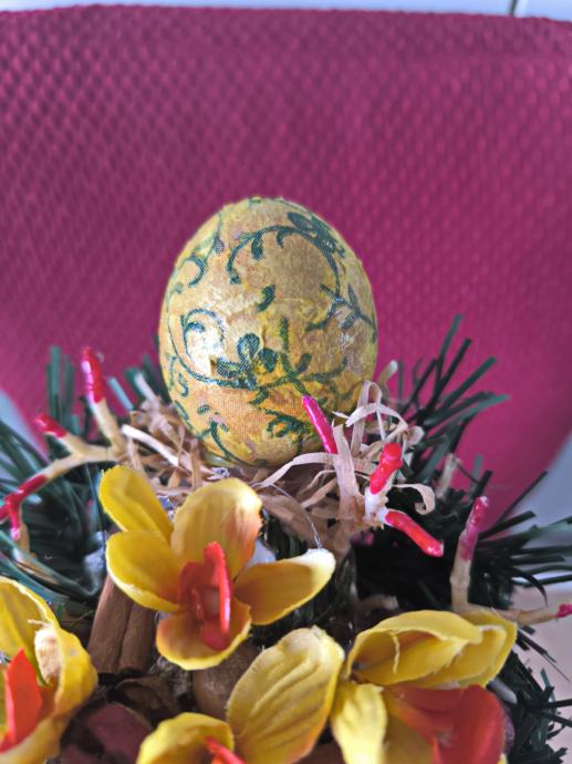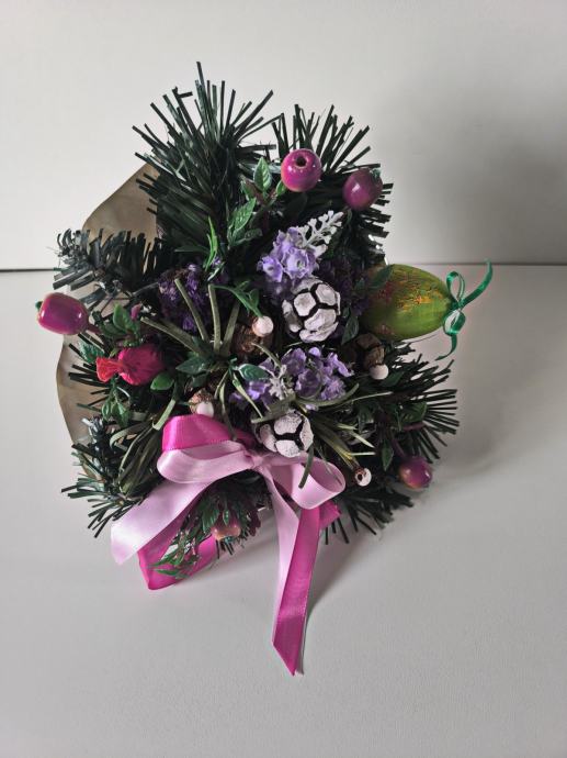 2. Buket, razni ukrasi, pisanica, svilena mašna, lila cvjetići - 6 €