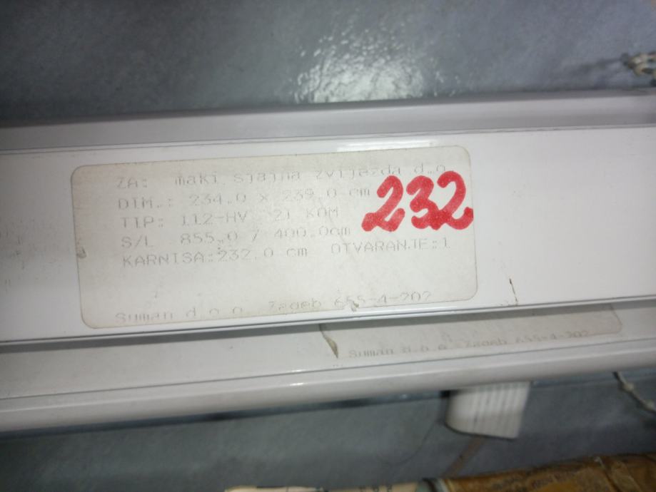 1- 2.32m(sirina) x 2.25m(visina) 6 komada