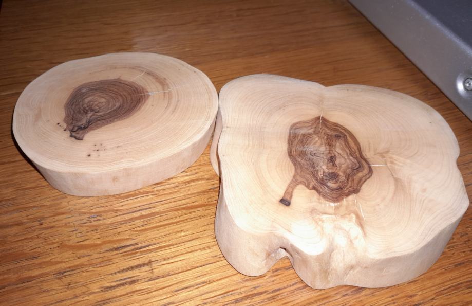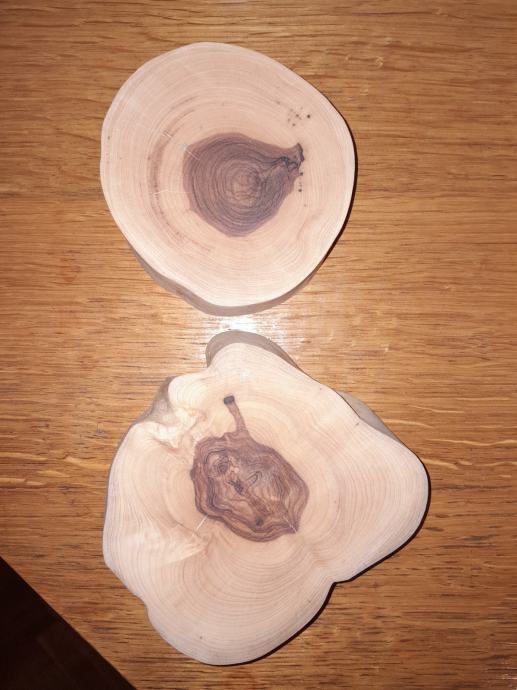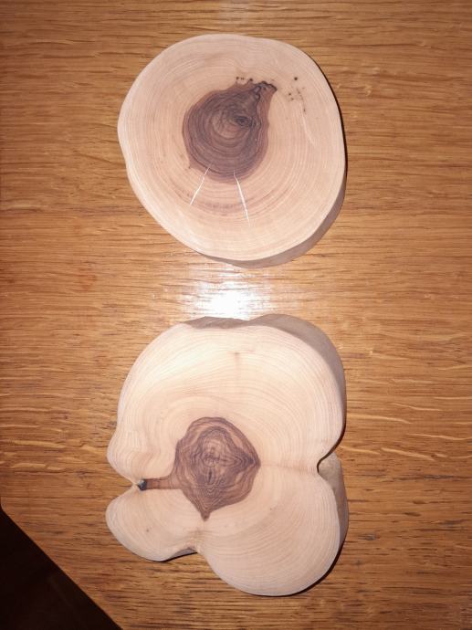 Maslinovo drvo 70-tak godina starosti, ručni rad glatko kao staklo. Debljine 2 cmm, dimenzije 8×8 i 11×11 cmm. Dva komada 30€.