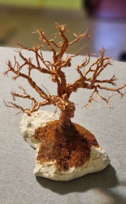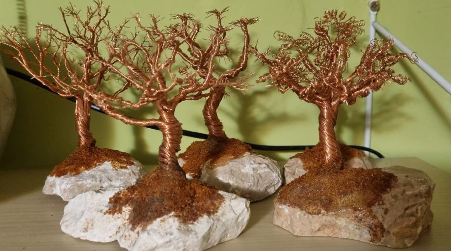Prodajem ukrasna drvca na kamenu, ručno rađena od bakrene žice i benkovačkog kamena. Visina 10-15cm. Istaknuta cijena za 1kom.