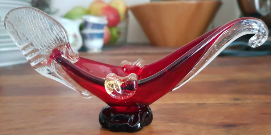 Mala murano ukrasna posuda, puhano staklo, izgled stilizirane gondole. Bez oštećenja.
