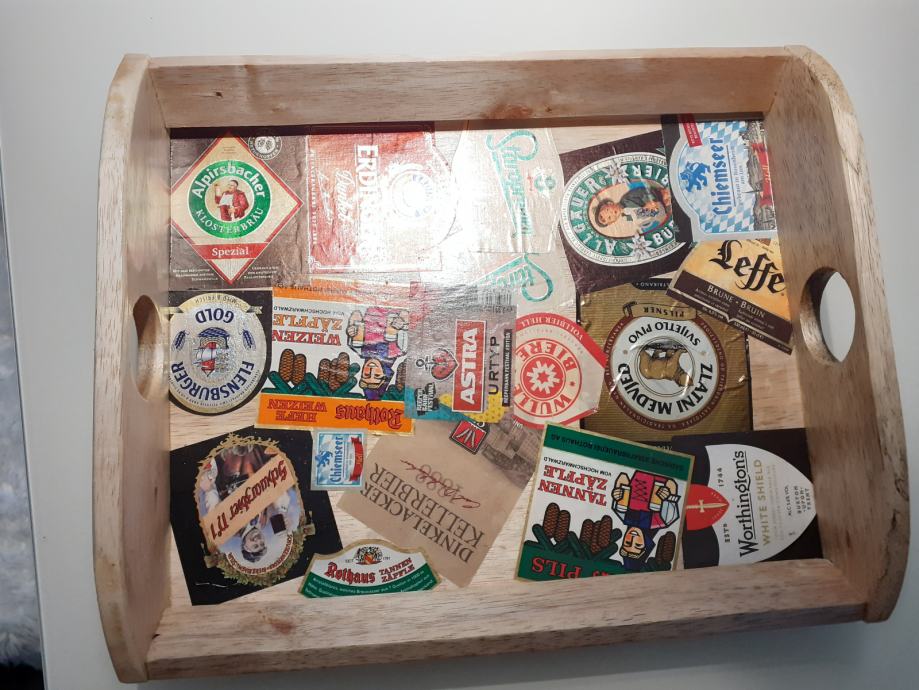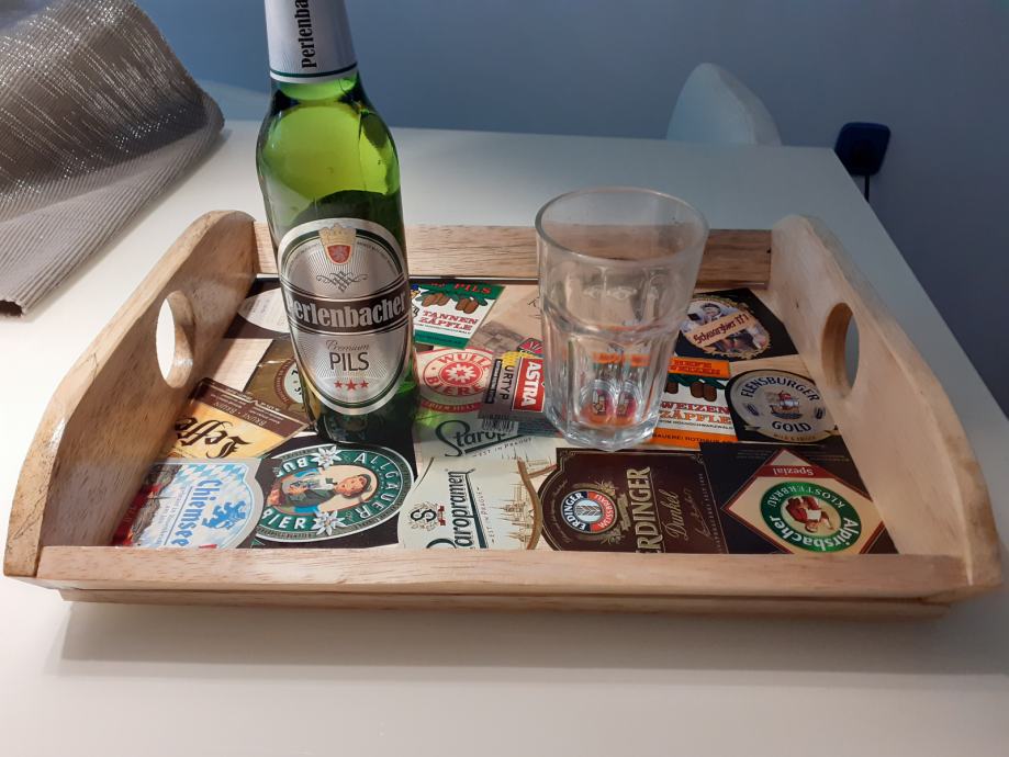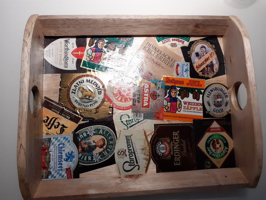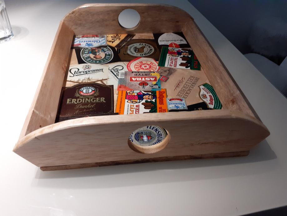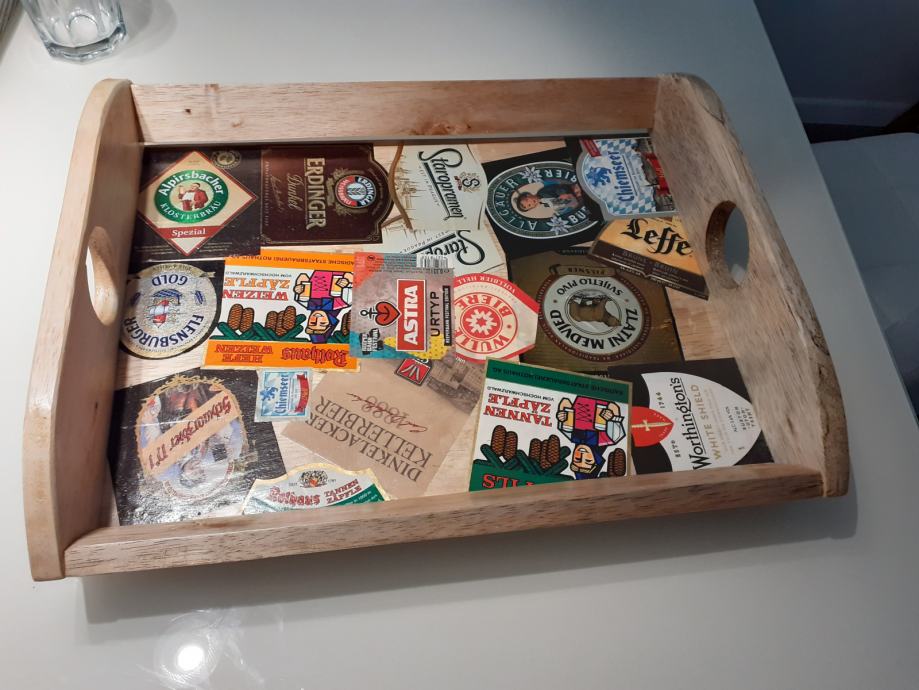 Na sebi ima pivske etikete, a dimenzije su 40cm x 30cm