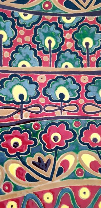 Terakota s glazurom, promjer 40 cm, moze se objesiti na zid ili kao posuda.