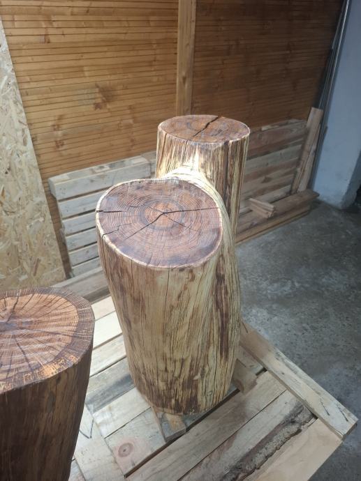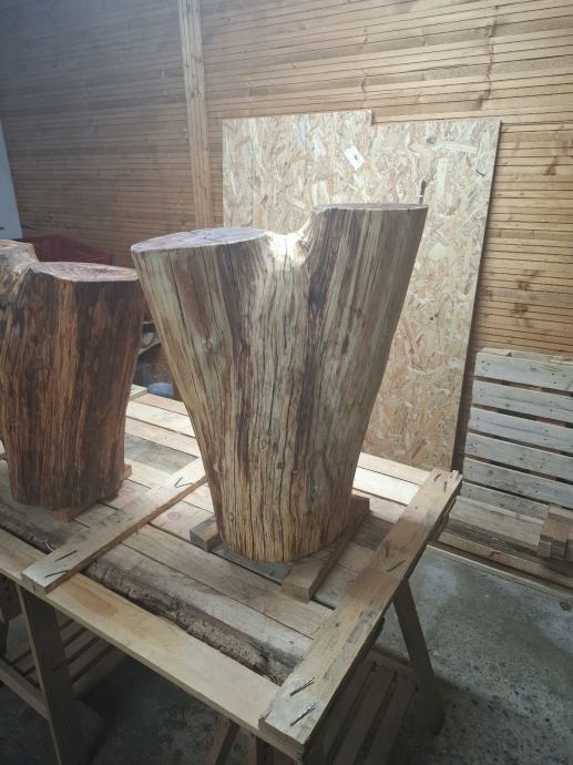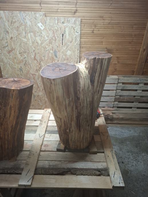 Suhi agacijev panj, pobrušen i premazan uljem. Visina 65cm, širina 55cm, dubina 30cm, težina cca 40kg. Moguća dostava