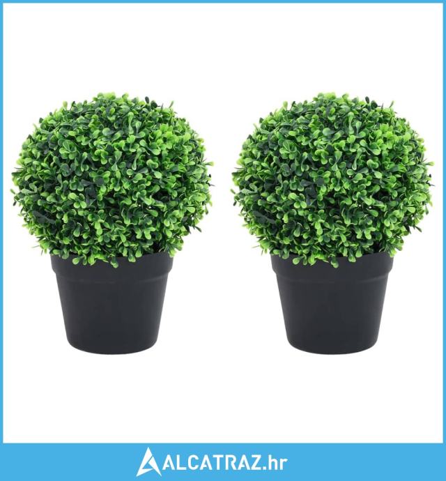 Umjetni šimširi s posudama 2 kom u obliku kugle zeleni 37 cm - NOVO