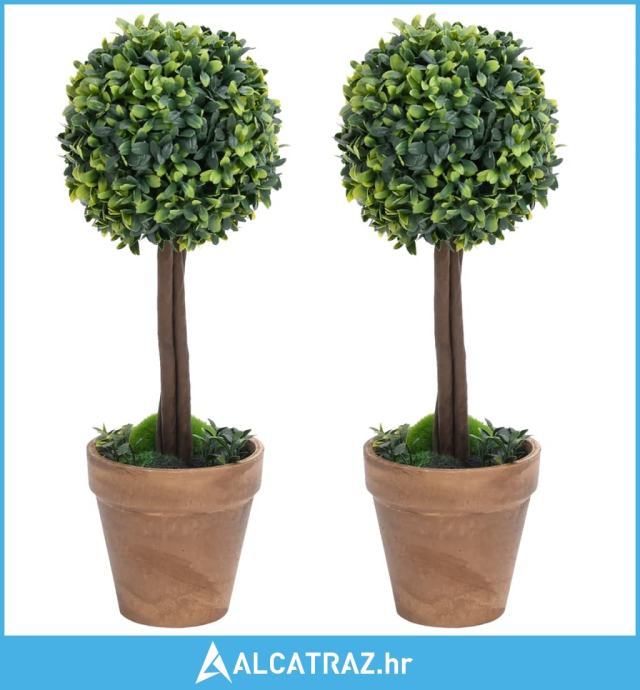 Umjetni šimširi s posudama 2 kom u obliku kugle zeleni 56 cm - NOVO