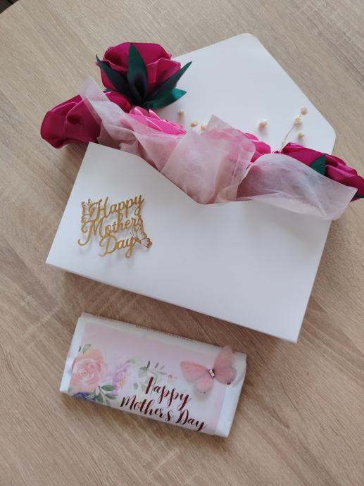 Nježne ruže od satena koje traju vječno i slatko iznenađenje u obliku čokolade – savršen znak ljubavi za Majčin dan.
