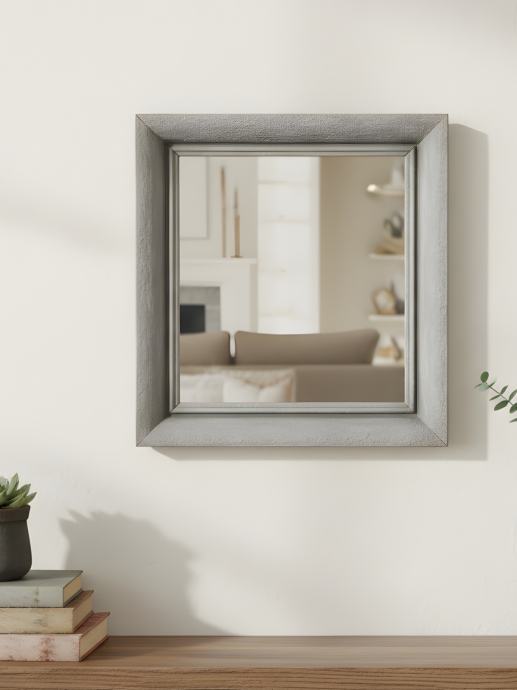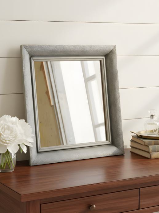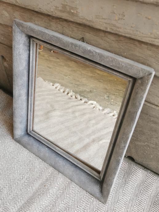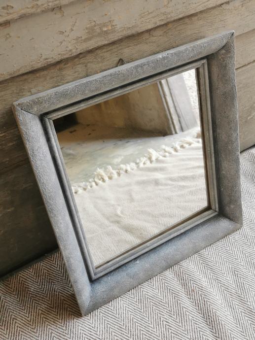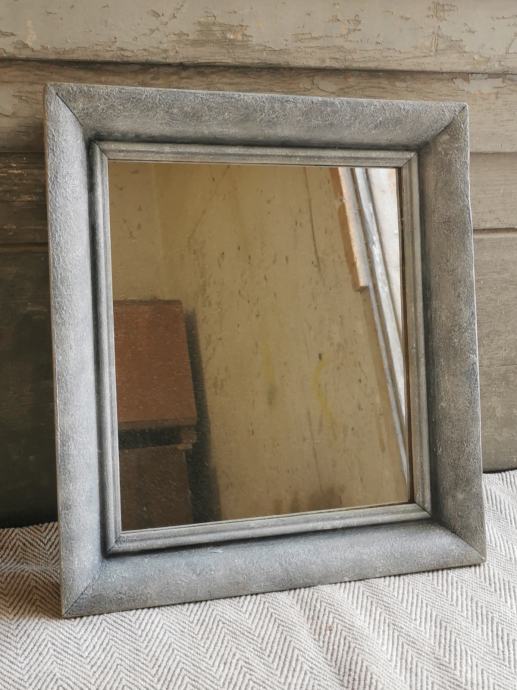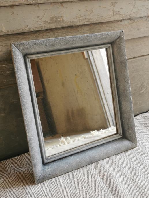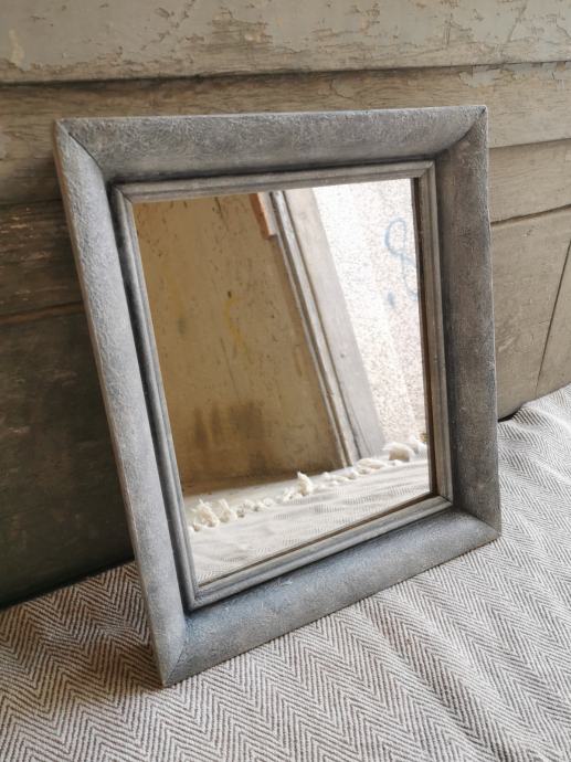 Unikatno ogledalo od starinskog drvenog okvira obojano u efekt kamena. 38,5 x 34,5 cm