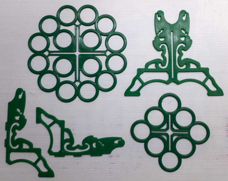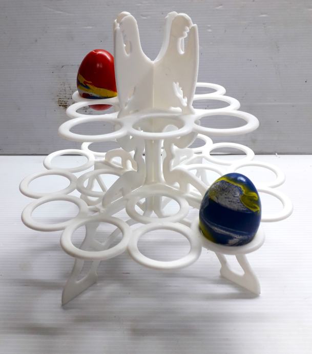Sklopivi stalci iz 5 djelova za uskršnja jaja (12kom bijelih i 2kom zelena) veličine cca 23cm X 24cm, novo nekorišteno.