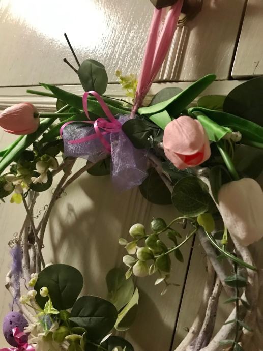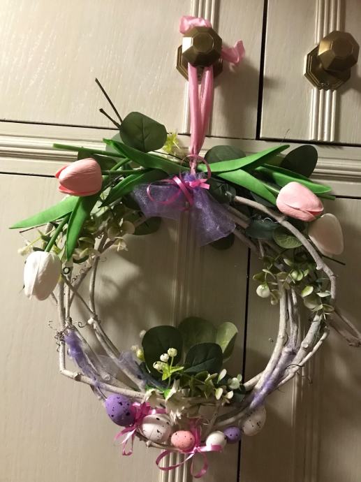 Uskrsni vjencic za vrsta, prozor , terasu , prozor ili po želji - hand made od šiblja, umjetnog cvijeća , svilene tkanine