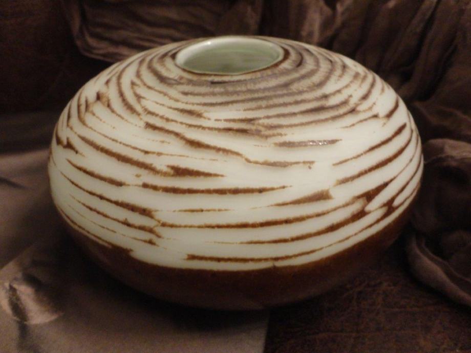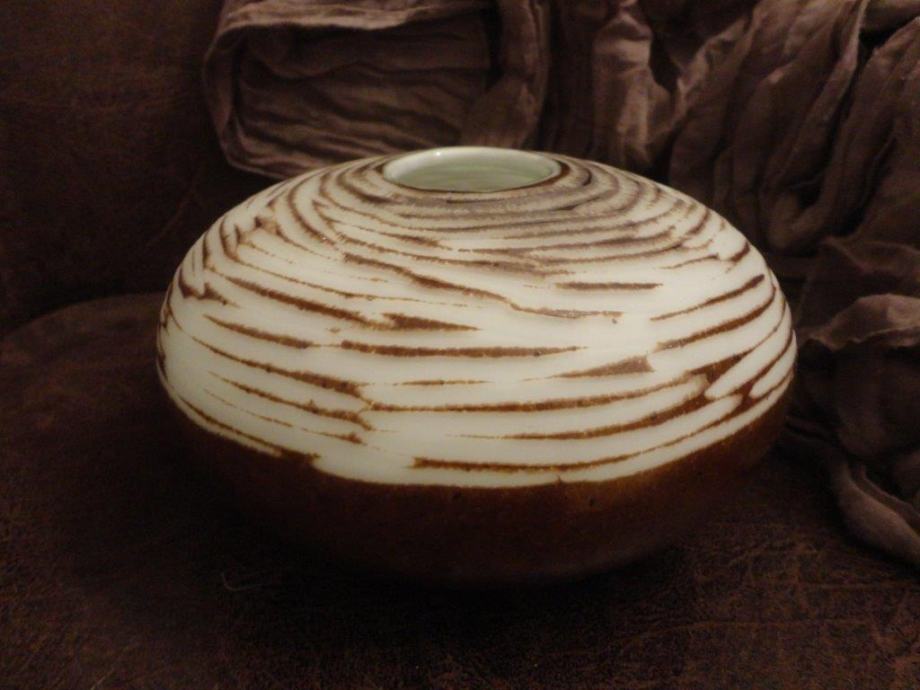 Vaza / ukrasna posuda/ staklena okrugla vaza; kupljeno u Švicarskoj, kao novo...