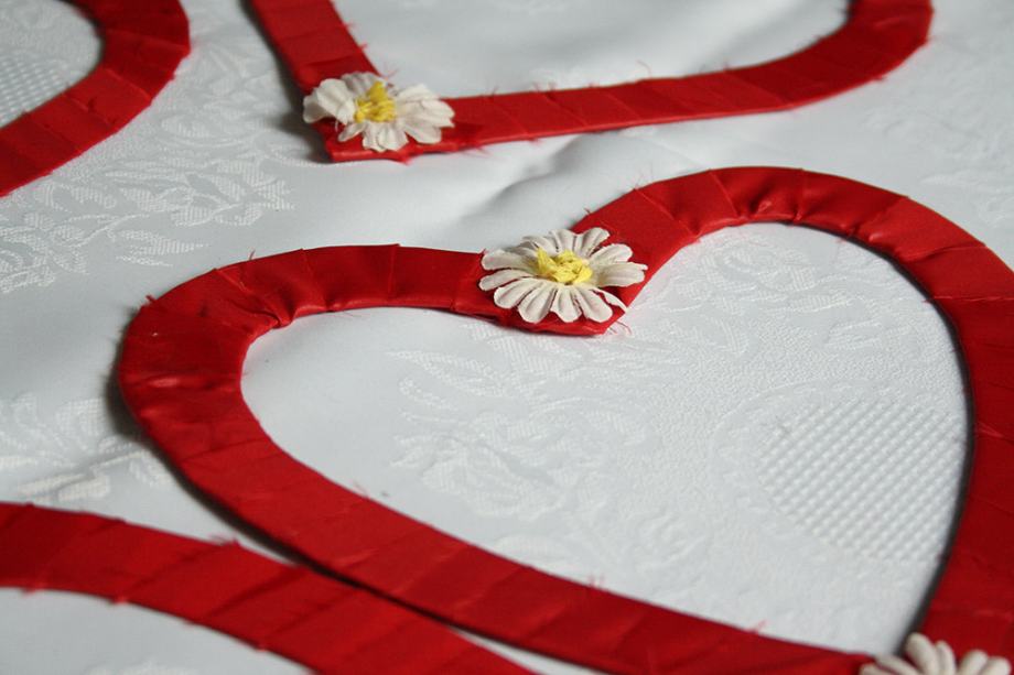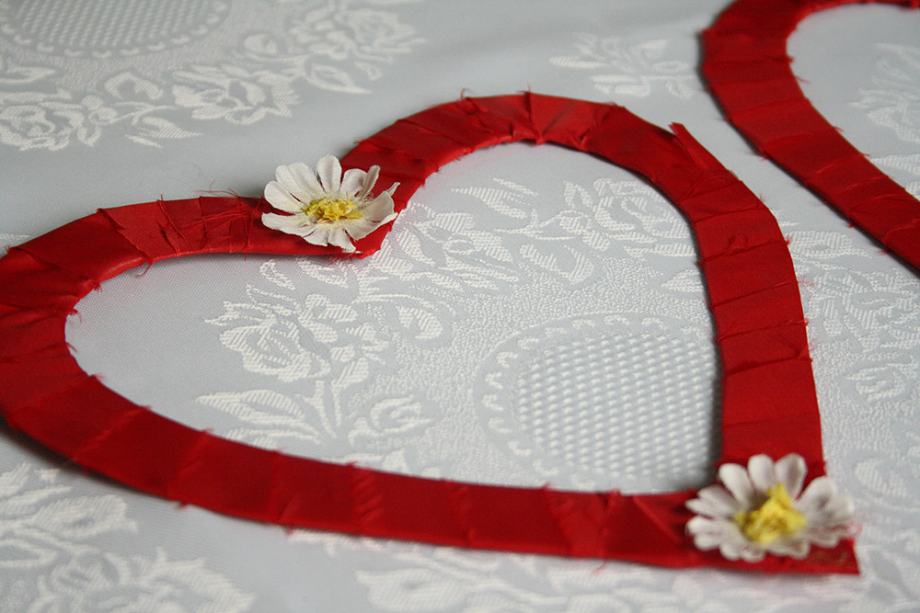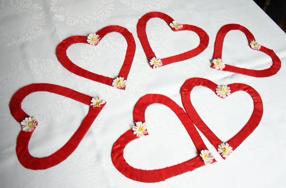 1.UNIKAT - RUČNI RAD - kartonsko srce obavijeno crvenim satenom, veličine 20 x 20 cm.. sa svilenim ivančicama..Pogodno za ured, izlog, vrata..Jedno srce 2 kune..