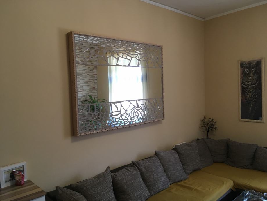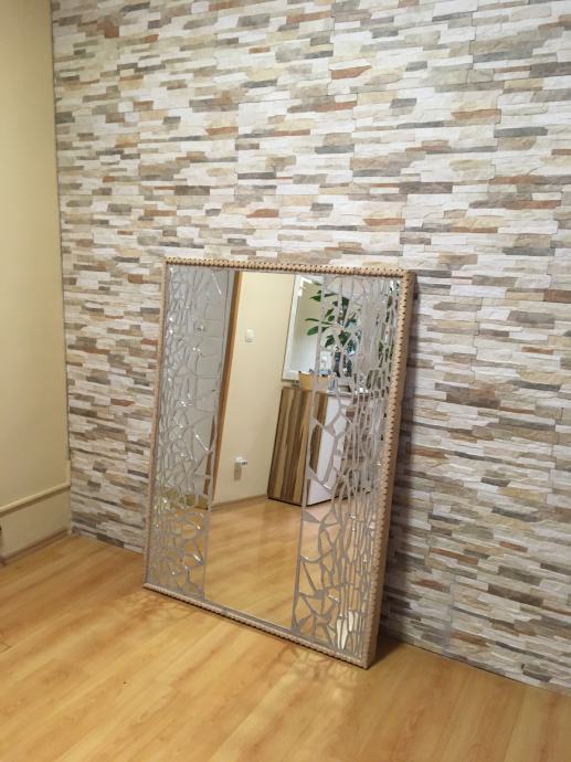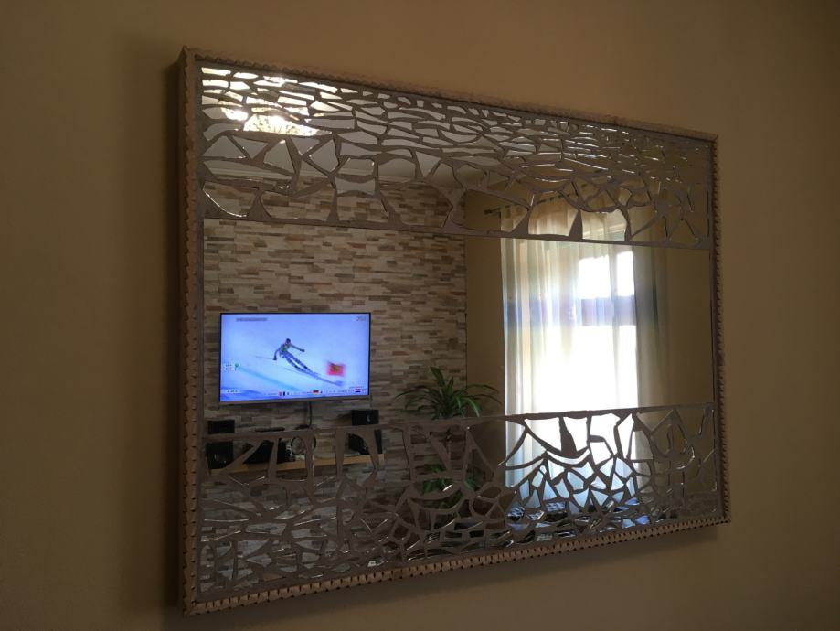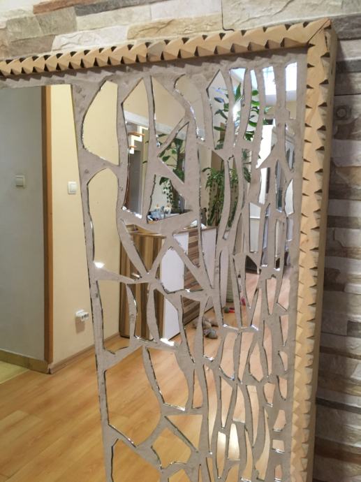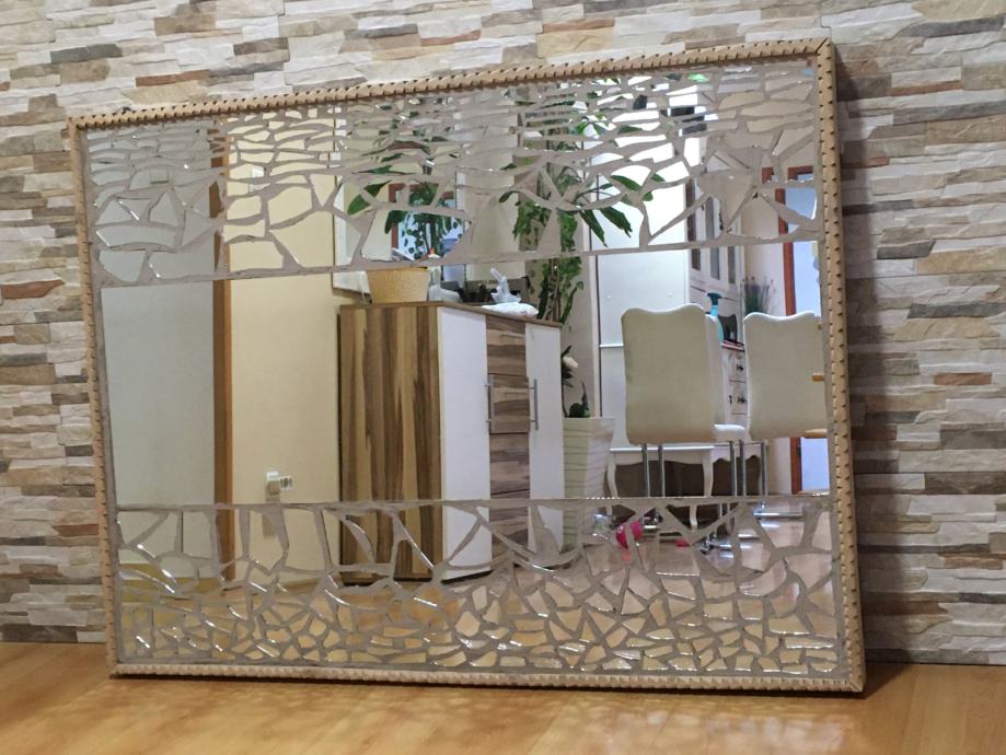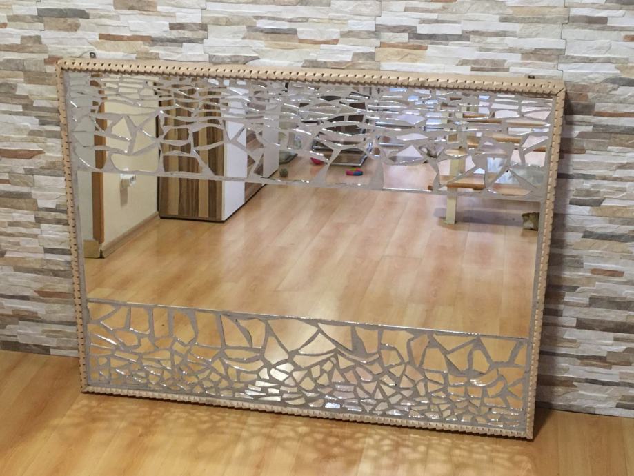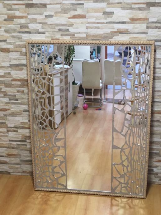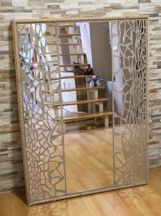 Prodajem ogledalo ručne izrade u mozaik tehnici. Konstrukcija-postolje je od masivnog drva Bukve ručno rezbareni okvir a može biti kao zidno ogledalo ili kao podno ogledalo. Radi se o jako velikom ogledalu,napravljenom u mozaik tehnici ručno,ima ulogu dekoracije na zidu a i kao ogledalo za upotrebu,unikat. Dimenzije ogledala su 145.cmX108.cm a može se postaviti i okomito i vodoravno. Težina masivnog ogledala je 22.kile i radi se o masivnom drvu bukve i jako debelom staklu ogledala koje je rađeno po narudžbi.