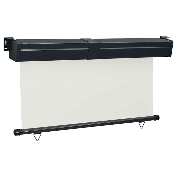 Zastor je napravljen od poliestera otpornog na UV zrake i kidanje. Aluminijski valjak osigurava glatko namatanje. Ima funkciju samostalnog zaključavanja tako da se može zaustaviti na bilo kojem mjestu. Duljina se može podesiti do 250 cm. Tenda se može automatski povući na čeličnu kasetu jednostavnim povlačenjem trokutastih prstena. Osim toga, ova balkonska okomita tenda može se pričvrstiti na zid ili strop prema određenim potrebama.