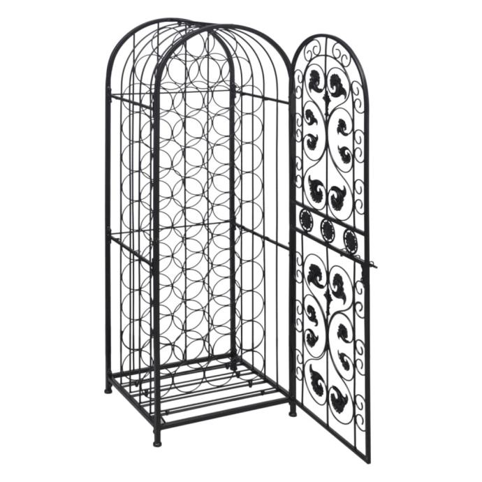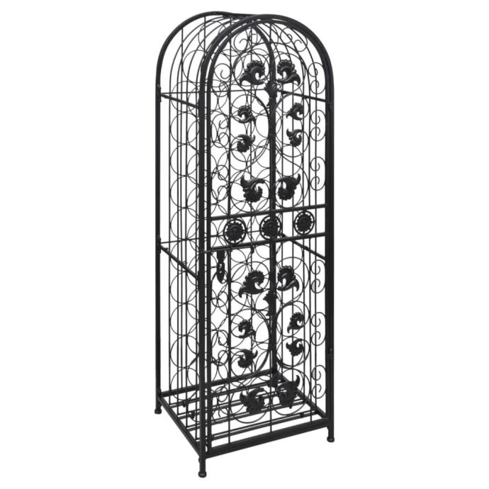 Ovaj samostojeći stalak za vino privlačit će poglede na bilo kojem mjestu. Izrađen od kovanog željeza, ovaj vinski stalak u potpunosti ima praškastu oblogu protiv hrđe i trajat će generacijama!