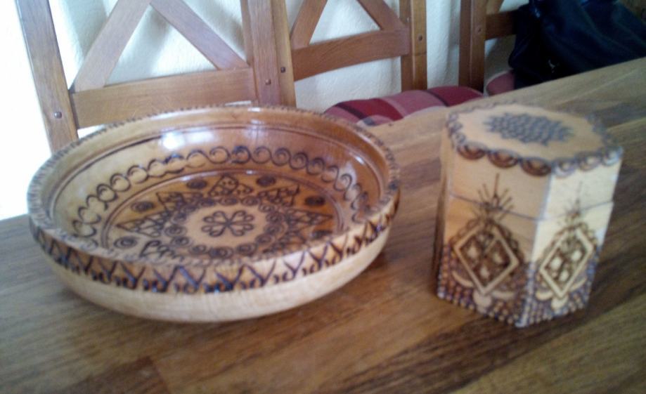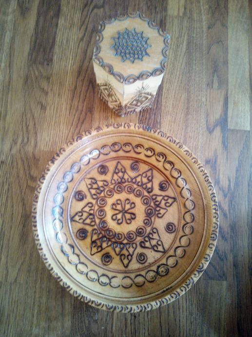 Zdjela 19cm promjera te visine 5cm,kutijica visine 8cm te promjera 7cm,ljepo izrađen vintage komplet
