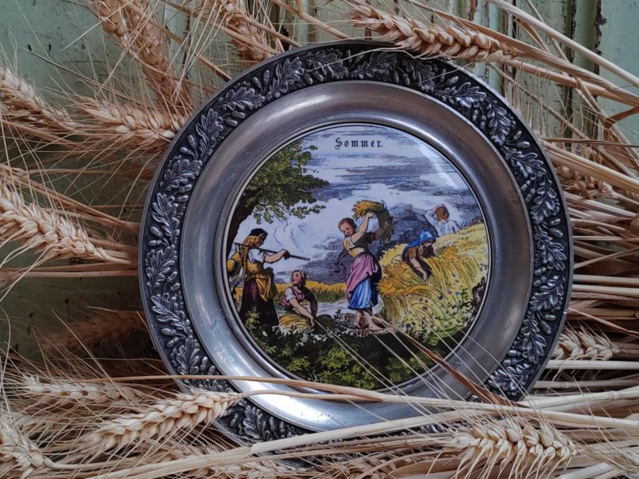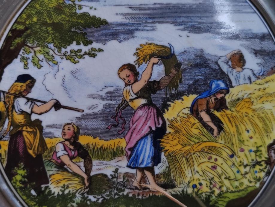 Ukrasni tanjur proizveden sedamdesetih godina s prizorom ljetne žetve.