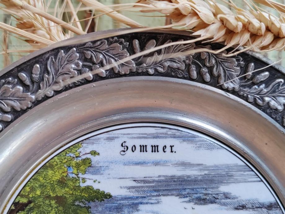 Reljefno ukrašen okvir od kositra s motivom žirova i žive boje na porculanu čine ga privlačnim za ukrašavanje retro ili rustikalnih prostora. Mogu se i koristiti za stiliziranje aranžmana na stolovima za samoposluživanje hranom na svečanostima koje se održavaju na otvorenom.