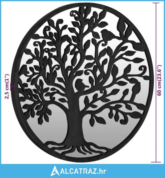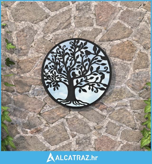 Okvir ogledala napravljen je od željeza, zbog čega je izdržljivo i stabilno. Ukrasni uzorak drva čini ga pogodnim za vanjske prostore. Može se upotrijebiti za isticanje nekog vrtnog sadržaja odražavanjem u zrcalu ili za odbijanje svjetlosti u tamni kutak. Ogledalo u vrtu kreativan je način da poboljšate izgled vrta i učinite da izgleda veći. Zahvaljujući prethodno izbušenoj rupi na vrhu, ukrasno ogledalo može se lako montirati na zid.
