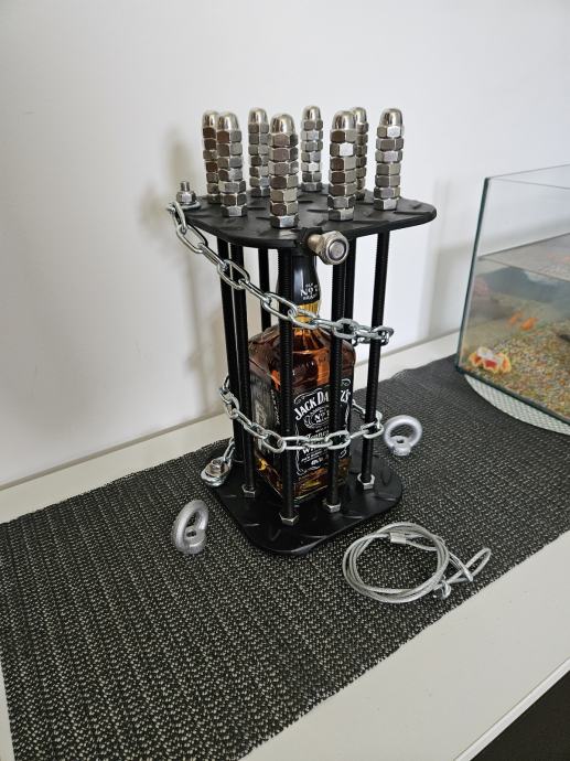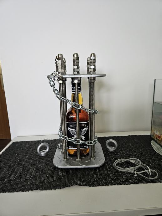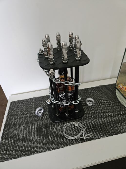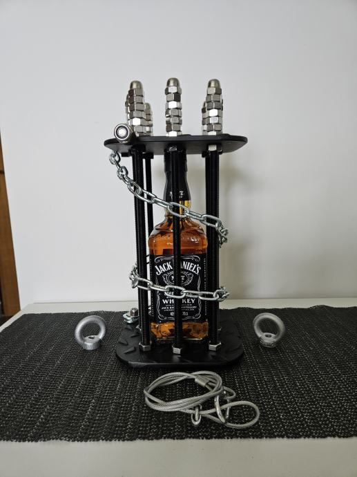 Prodajem ručno izrađen Whiskey Jail – zaključani držač za bocu s dodatnom opcijom vješanja u zrak.