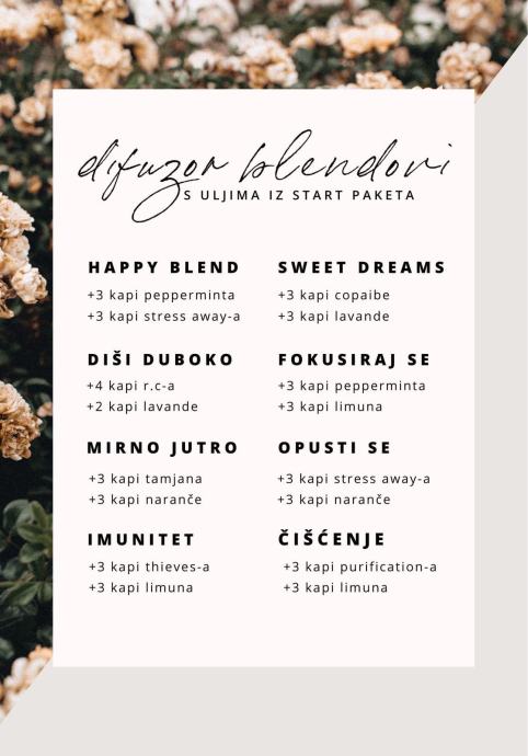 Prodajem za 150€ te dodajem i sva eterična ulja koja su ostala (zadnja slika prikazuje kako funkcioniraju eterična ulja prilikom miješanja)